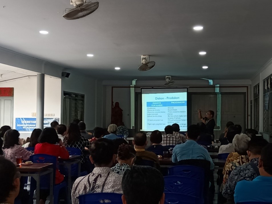 Kegiatan pembekalan yang pertama bagi para calon prodiakon St. Albertus Agung Jetis dilangsungkan pada hari Minggu, 11 Desember 2022, pukul 10.30-14.00 WIB bertempat di Aula Paroki. Untuk selanjutnya, masih ada pembekalan kembali pada bulan Januari (1x pertemuan) dan Februari 2023 (2x pertemuan). Kegiatan ini dihadiri oleh 52 orang calon prodiakon dan 5 mahasiswa/i PENDIKKAT USD yang membantu persiapan konsumsi. Tak lupa dihadiri pula 2 narasumber: Romo Vincentius Suparman, Pr yang memandu materi sesi I tentang “Apa itu prodiakon & tugas-tugasnya” dan Pak Evan (Prodiakon Senior) yang memandu materi sesi II tentang “Kelengkapan & Tata Liturgi Prodiakon”.
