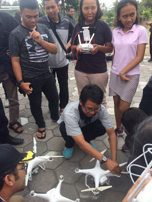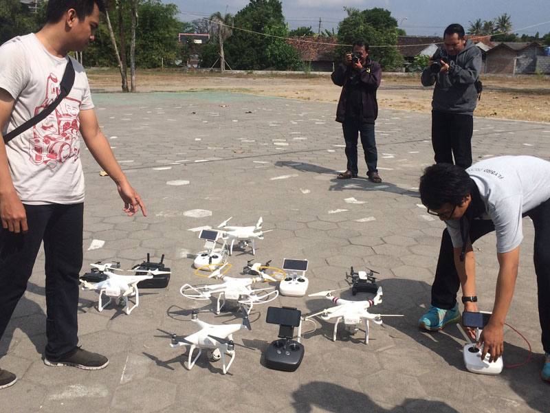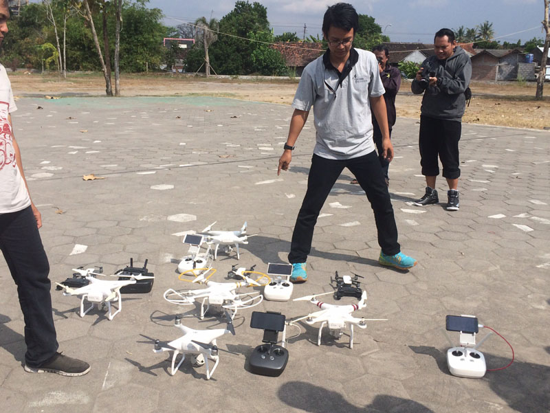 Briefing singkat pertama-tama dibawakan oleh Mas Adrian di Joglo Antonio. Sekitar 30 menit kemudian, kami langsung praktek menerbangkan drone.